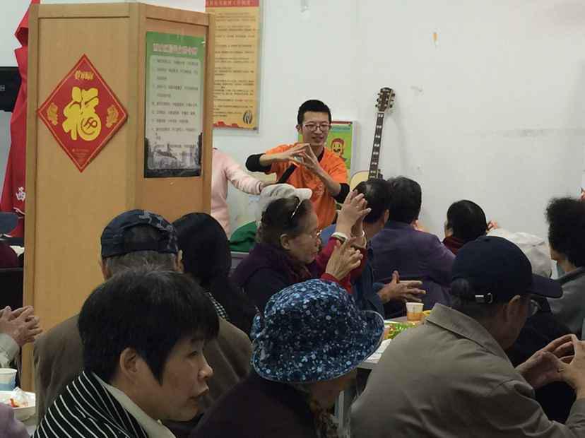 在主持人讲话完毕之后,由北科乐活堂的朱俊杰为汽南社区的老年朋友们带了了吉他弹唱:《浏阳河》与《最浪漫的事》。歌中有句歌词是这样写的:我能想到最浪漫的事,就是和你一起慢慢的变老,直到我们老的那也去不了,依然把我当成手心里的宝。希望所有的老年人朋友们,都能快快乐、健健康康的生活在自己的社区。